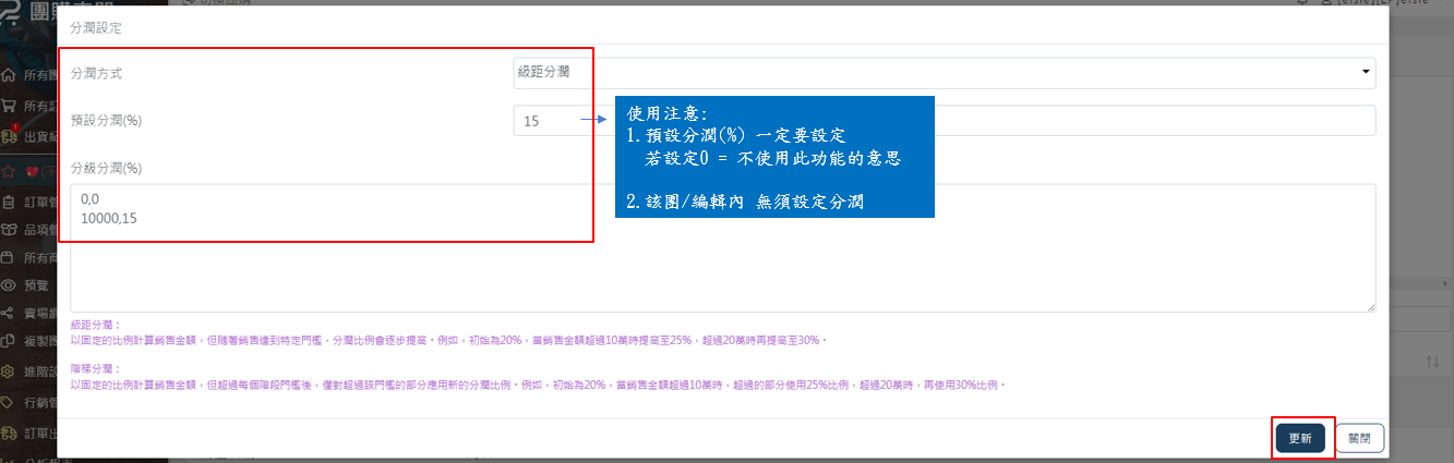 *如果商品有設分潤,此處進階設定就會無效