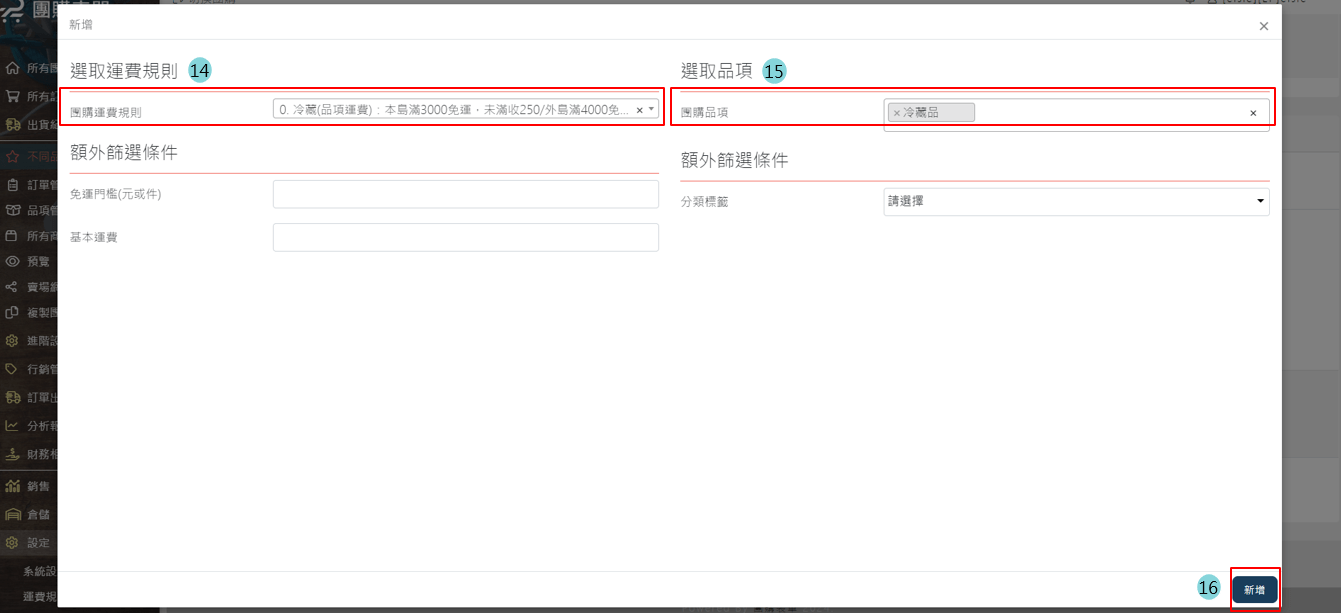 3.團購> [>] > 品項/商品管理 > 冷藏品項 > 新增品項運費