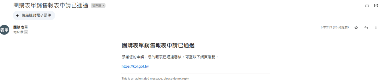二.團主申請後,請通知團購表單業務進行授權同意。
