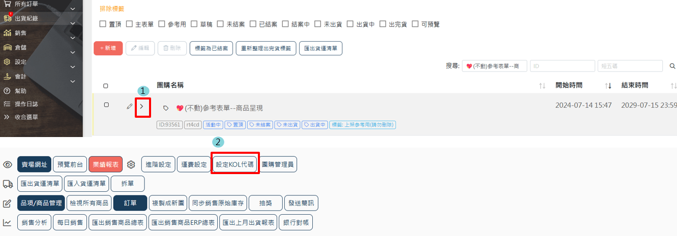 團購表單銷售儀表板/設定KOL代碼