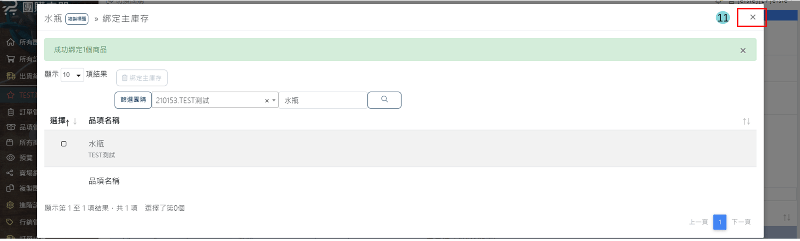 路徑:子庫存團位置 > 品項/商品管理 > 打V欲綁定的品項 > 綁定主庫存